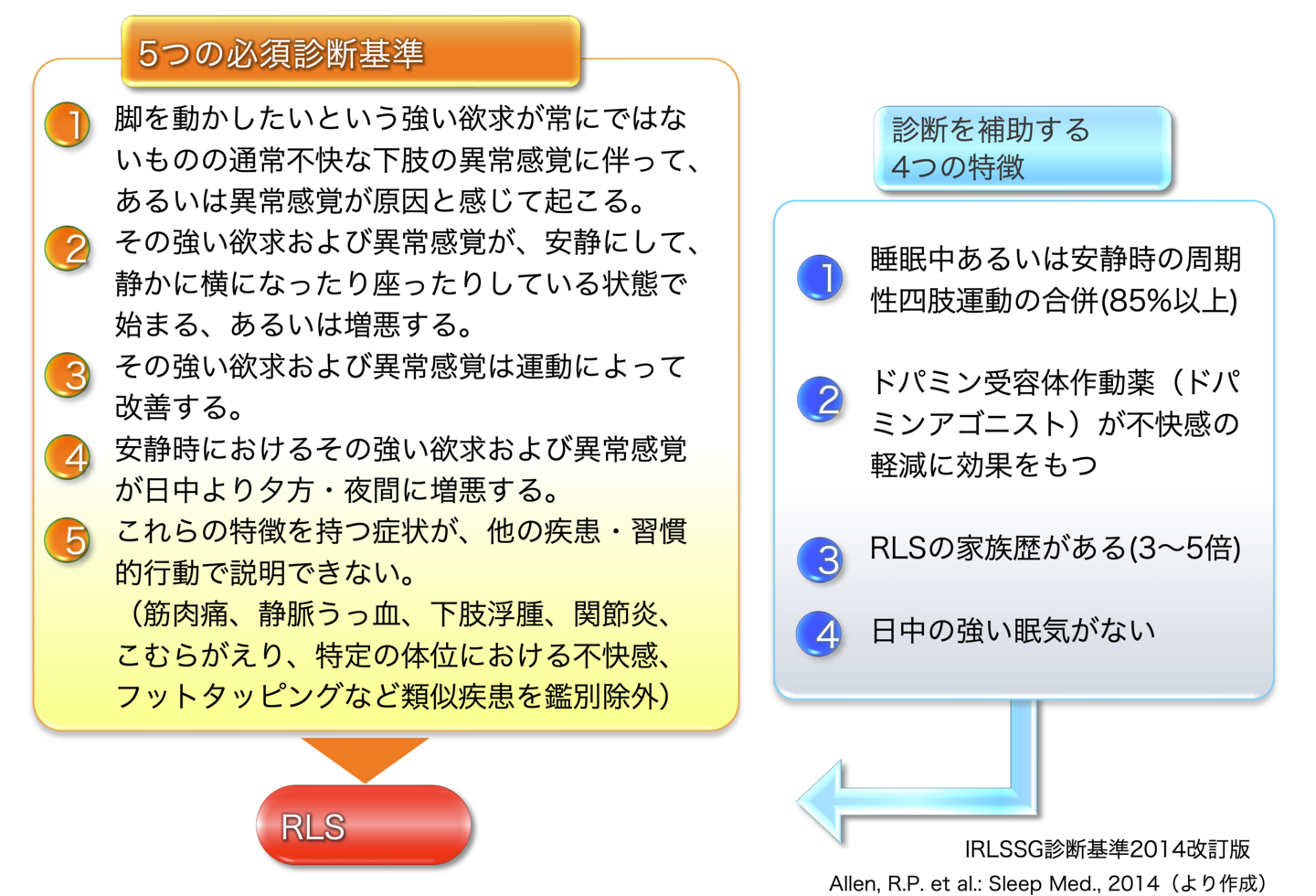 特に下肢を中心とした異常感覚のために、「どうしても脚を動かしたい」という耐え難い運動欲求が生じる感覚障害です。