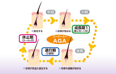 毛髪の成長に欠かせない毛穴や毛根の状態は、AGAが発症してから時間が経過した場合、悪化している場合があり、改善が非常に難しくなってしまうこともあるため、早めの治療がお勧めです。AGAにお悩みなら、早いうちに治療を開始することをお勧めします。