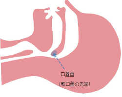 - 扁桃と同様に、口蓋垂が長すぎることも気道をふさぐ原因になります。