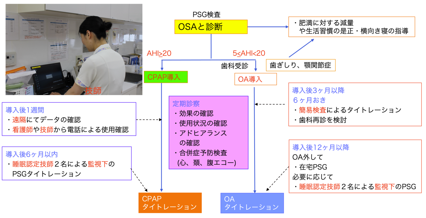 ・CPAP療法を開始したら、約3〜6ヶ月後に再び精密PSG検査で確認します。