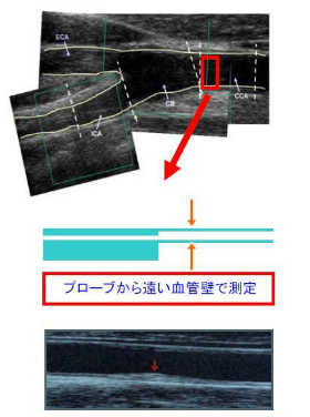 そのエコーの写真から血管年齢を測定する、基本的な動脈硬化の指標を示す検査とされます。